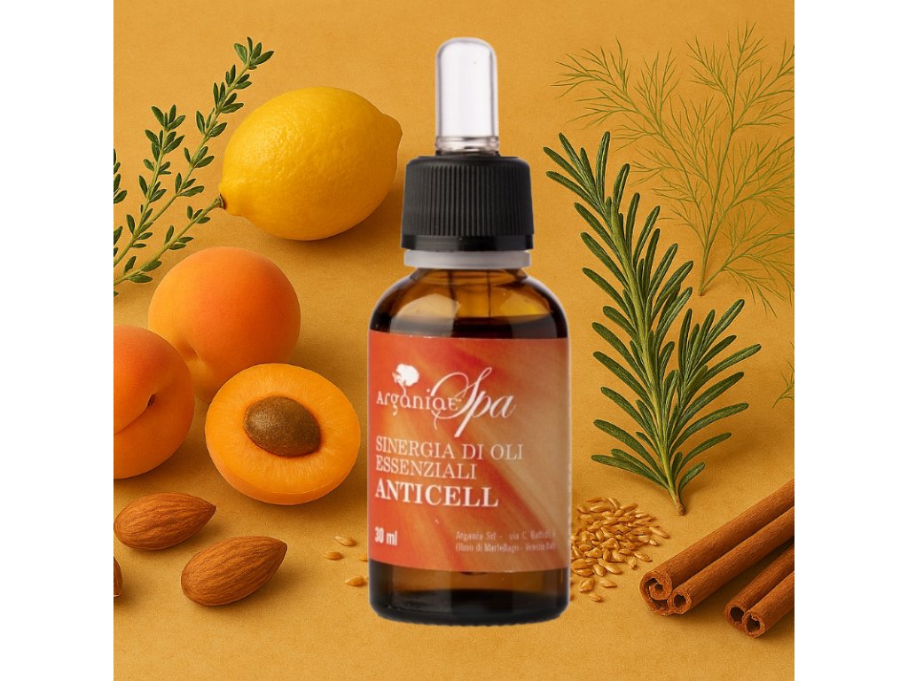Synergie anticelulitidních esenciálních olejů je zaměřena na léčbu poruch způsobených nedokonalostmi pleti, jako je celulitida, pomocí masáže.